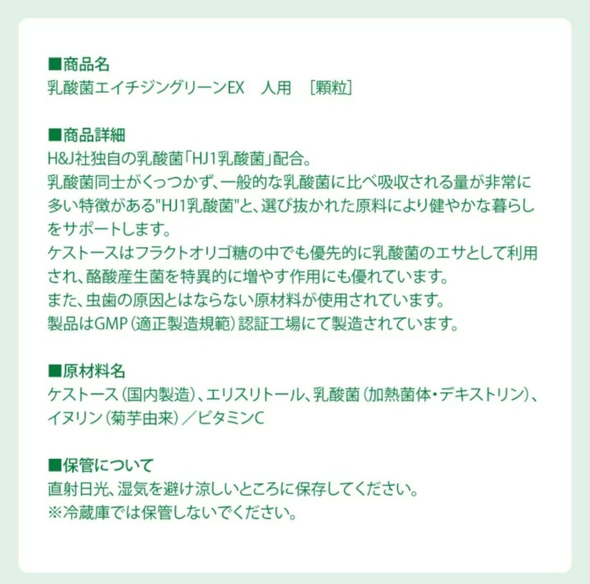 H&JIN グリーン EX 乳酸菌 人用(30包)【プレミアム】