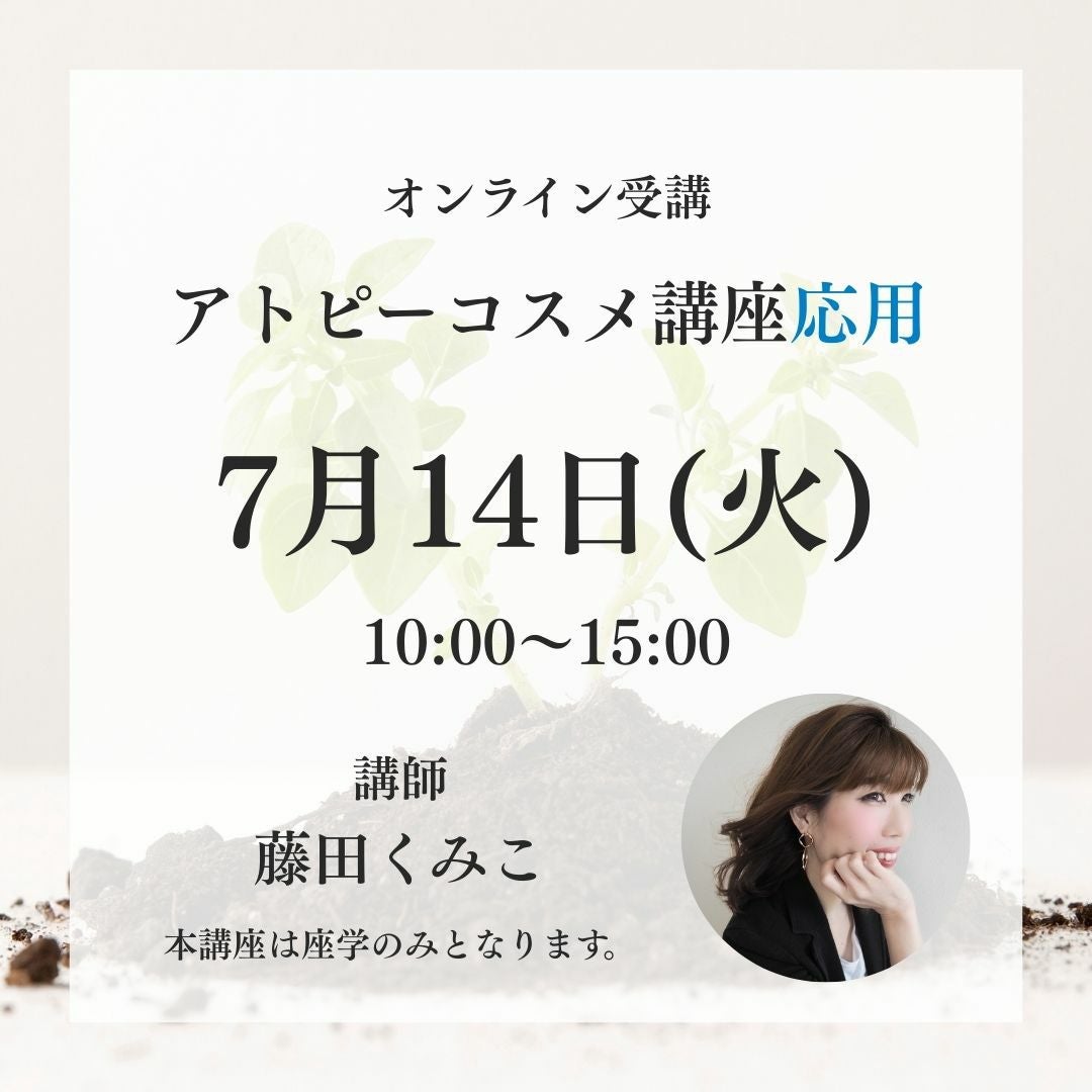 他の画像を見る 【オンライン受講】 7月14日開講/アトピーコスメ講座応用 ¥ 33,000 税込 販売開始前です。 販売期間 2026/05/12 0:00 〜 2026/06/07 23:59 詳細を見る お気に入りに登録する