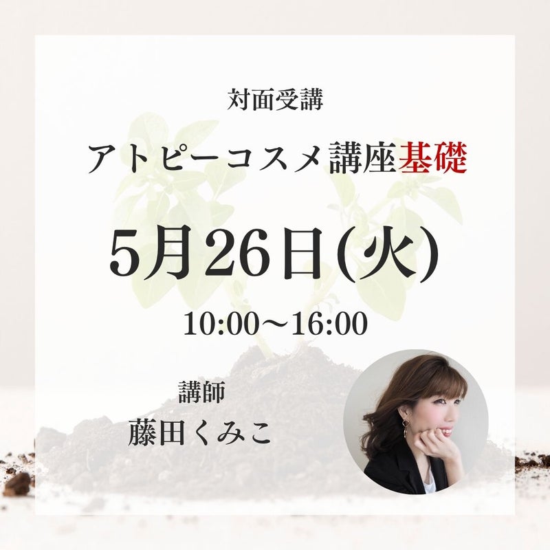 5月26日開講/アトピーコスメ講座基礎