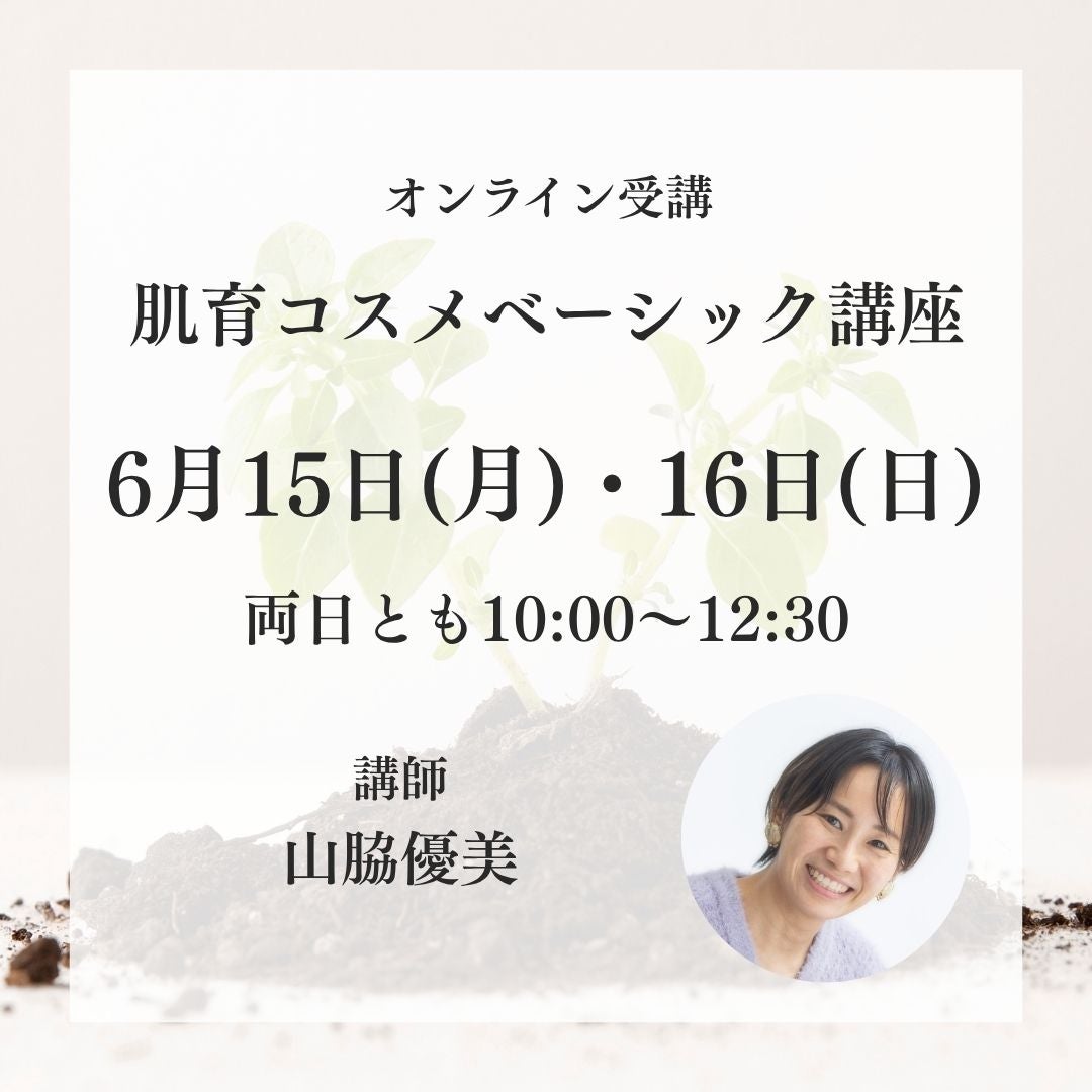 他の画像を見る 【オンライン受講】 6月1日開講/肌育コスメベーシック講座 ¥ 44,000 税込 販売期間 2026/04/03 0:00 〜 2026/04/26 23:59 詳細を見る お気に入りに登録する
